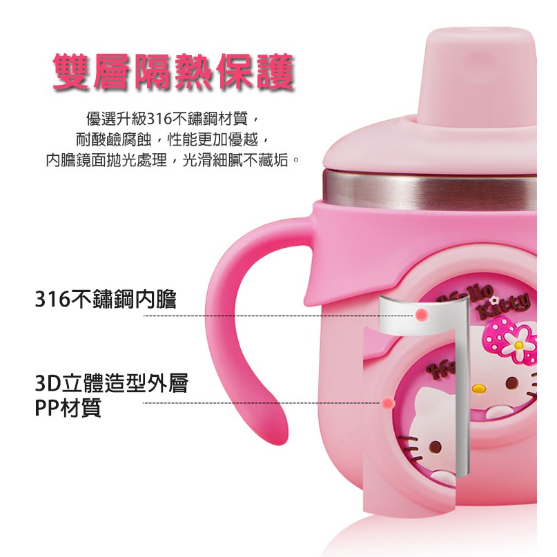 【優貝選】HELLO KITTY凱蒂貓立體圖案兒童用316不鏽鋼刻度牛奶杯/學習杯/吸管杯 260ML