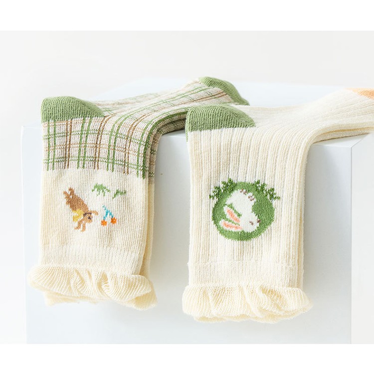 【優貝選】舒適學生童襪5入套組-森林綠兔