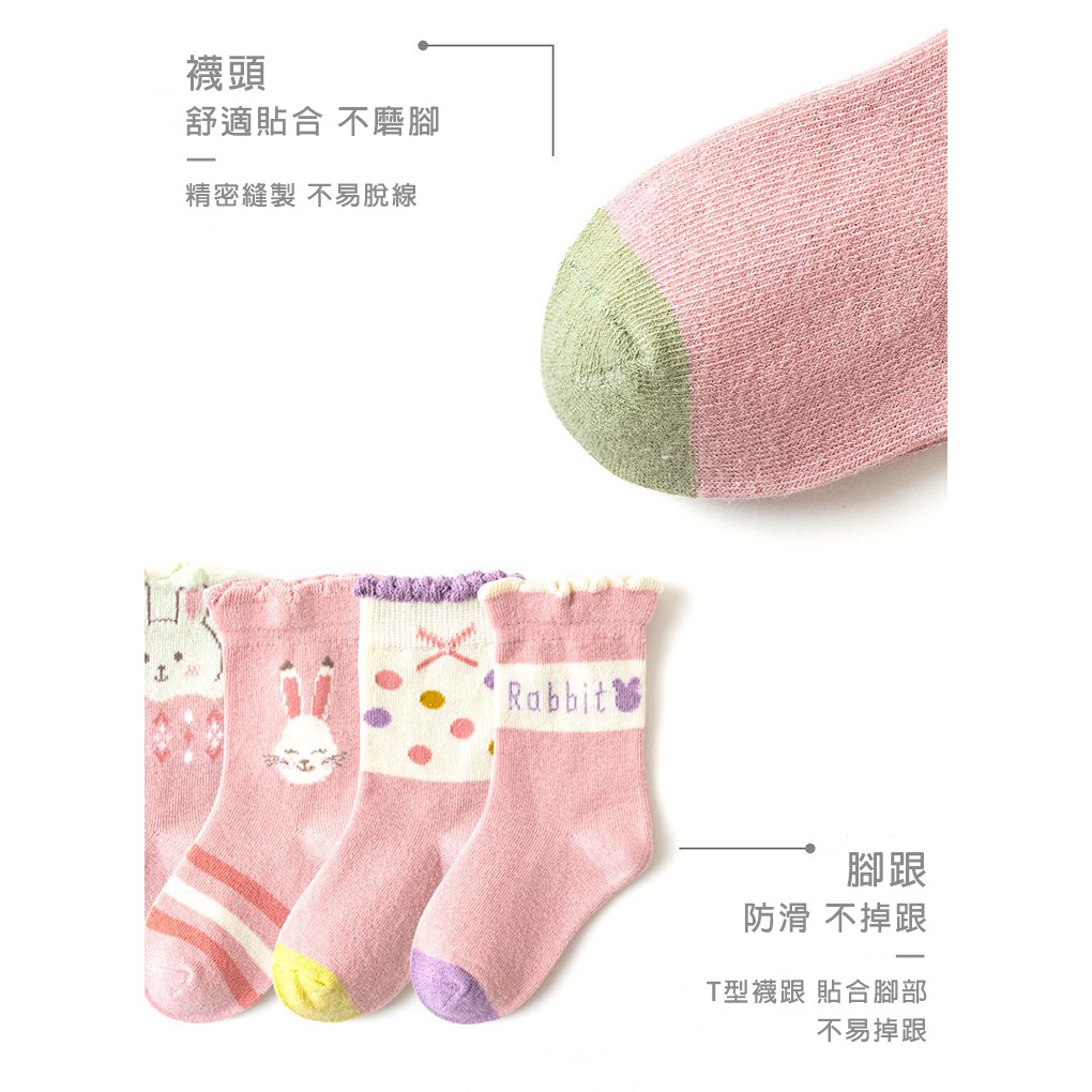 【優貝選】舒適學生童襪6入套組-雲朵小兔