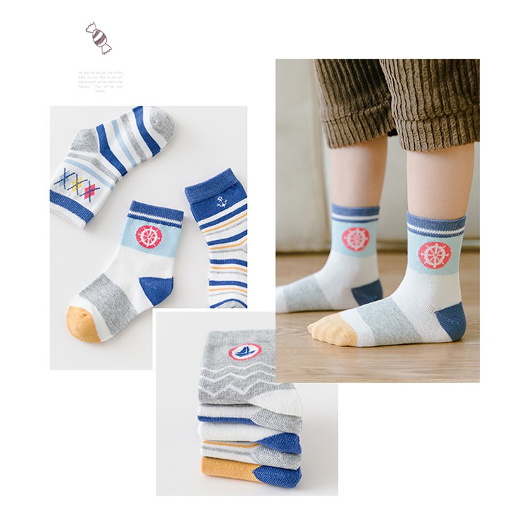 【優貝選】舒適學生童襪5入套組-拼色帆船