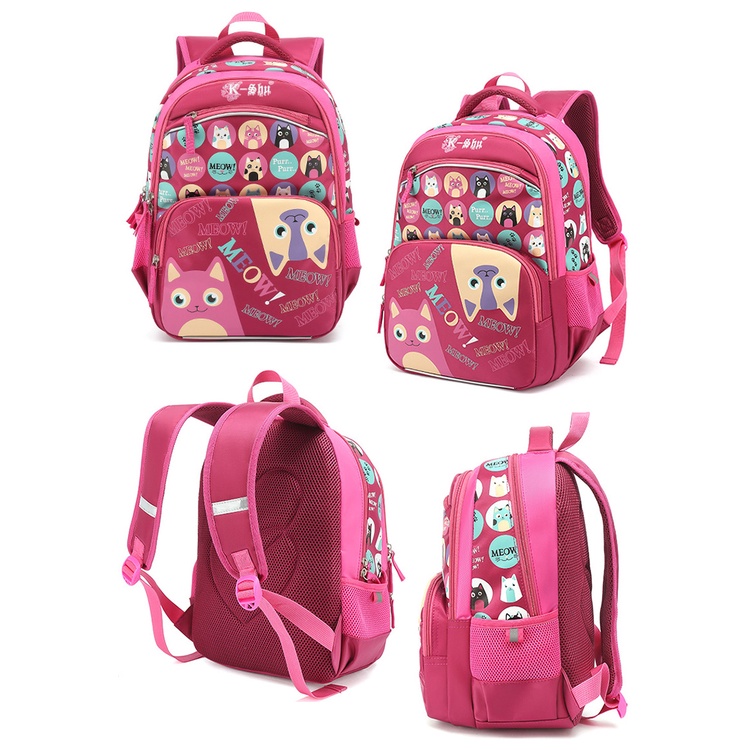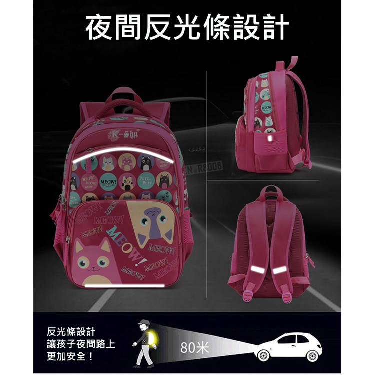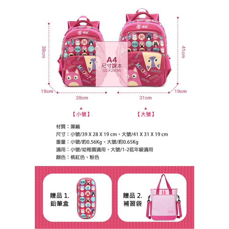 【優貝選】童趣貓咪塗鴉幼稚園/小學生兒童書包(附贈鉛筆盒/補習袋)