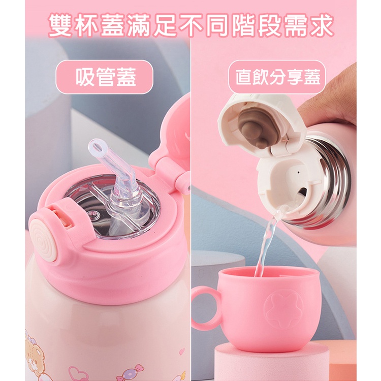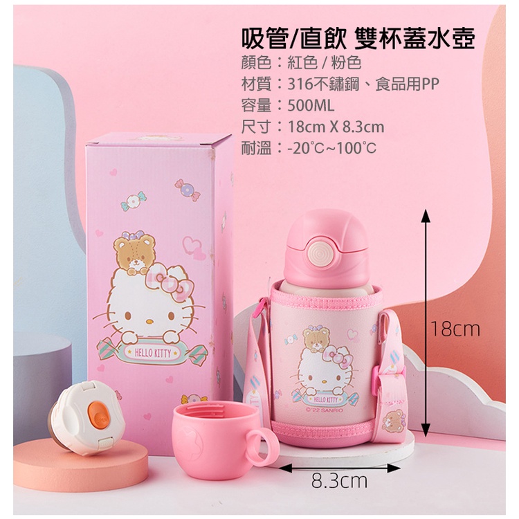 【優貝選】三麗鷗HELLO KITTY 粉嫩色系316不鏽鋼直飲式/吸管式 雙杯蓋兒童水壺套組 500ML-紅色NG品