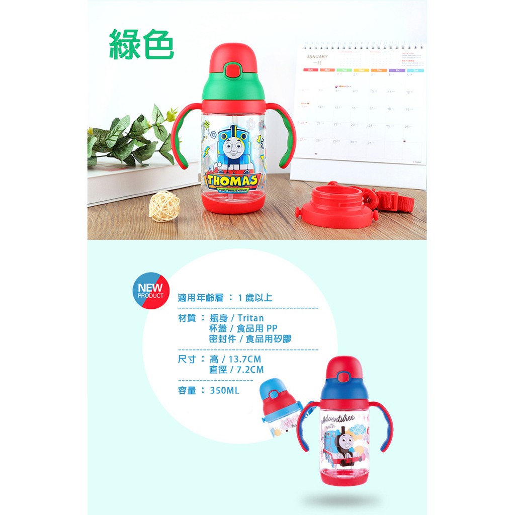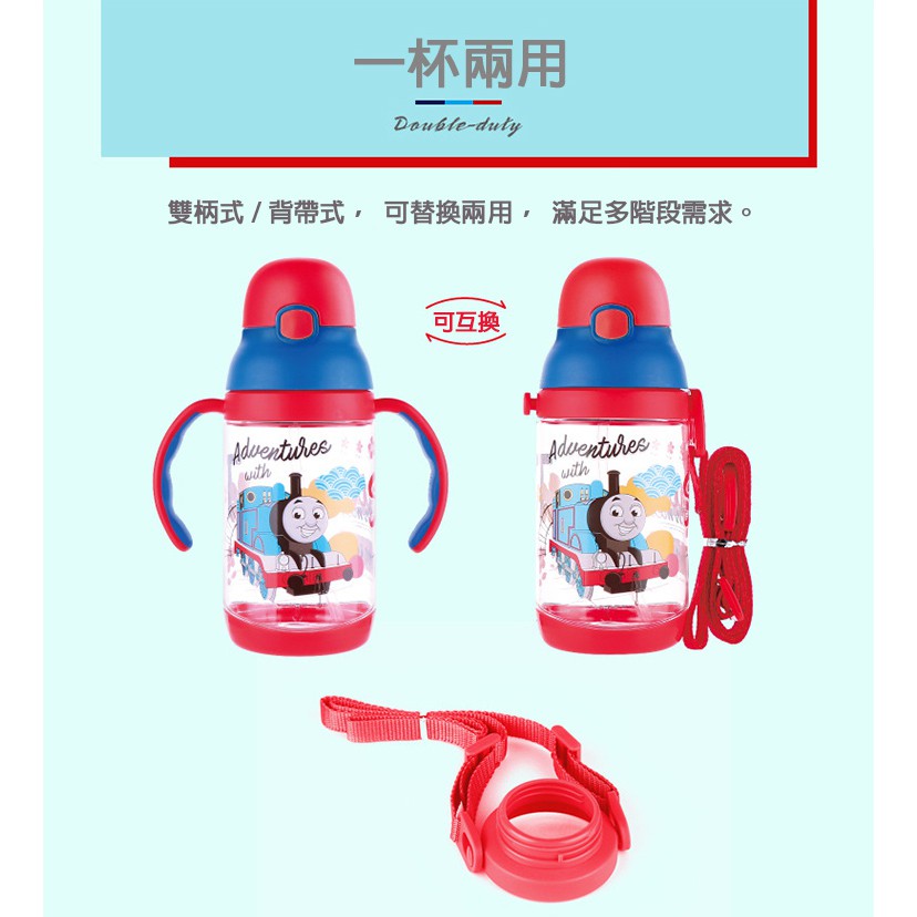 【優貝選】湯瑪士THOMAS 兒童吸管水壺 雙柄/背帶可兩用(350ML)