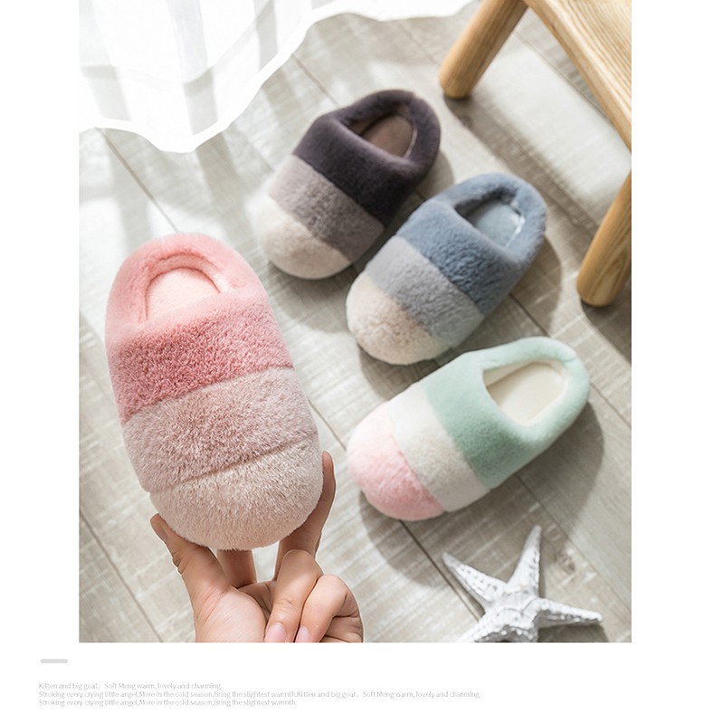 【優貝選】兒童馬卡龍撞色秋冬室內棉拖鞋