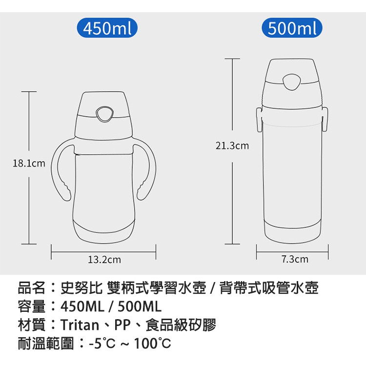 【優貝選】俏皮史努比海軍風 雙柄式/背帶式 水壺