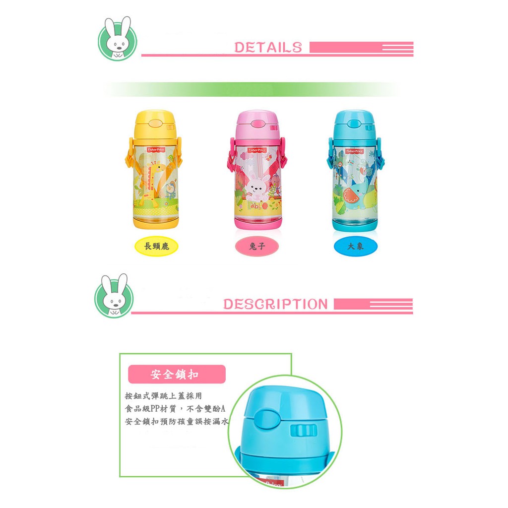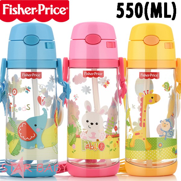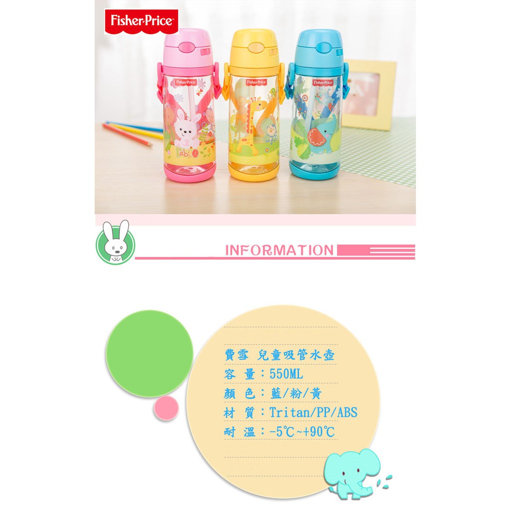 【優貝選】費雪 可愛動物 兒童背帶水壺 吸管水壺 550ML