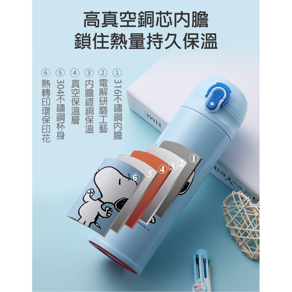 史努比 SNOOPY 兩用 保冷/保溫 直飲式水壺 480ML【優貝選】