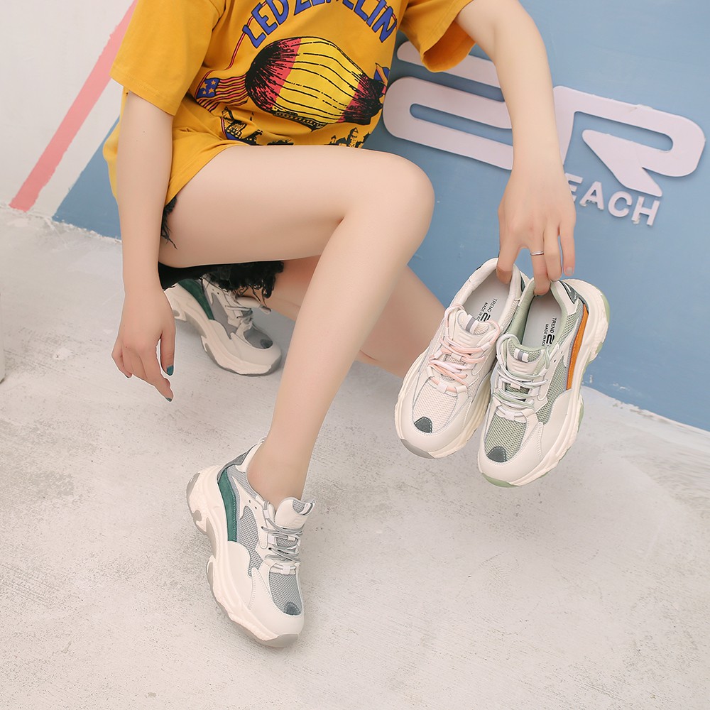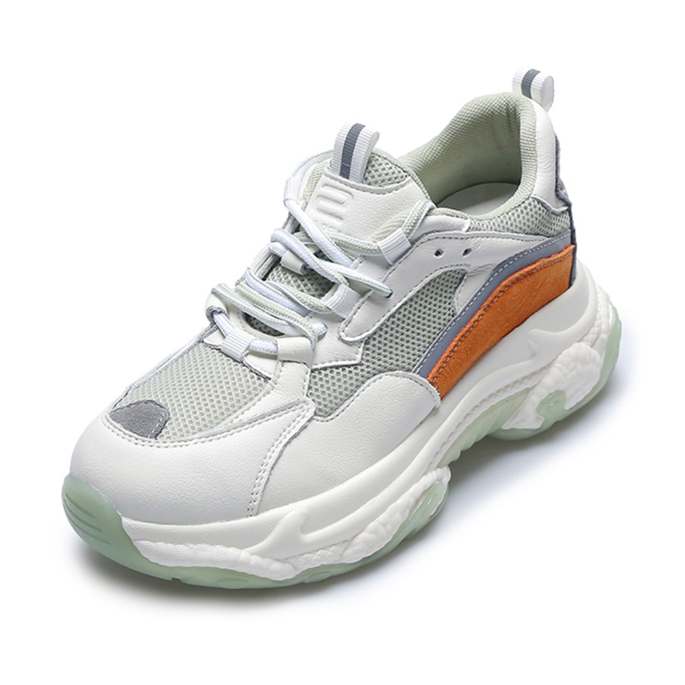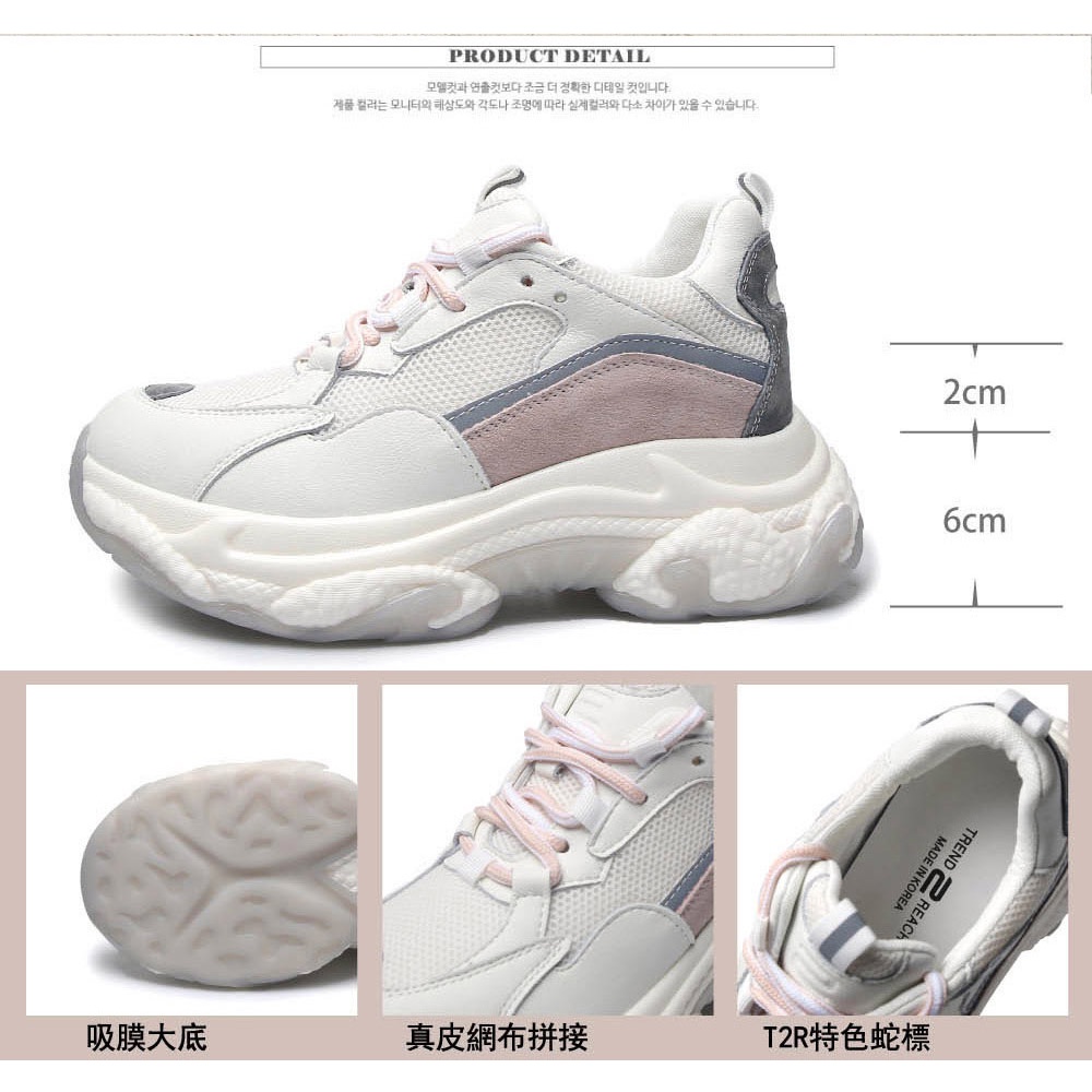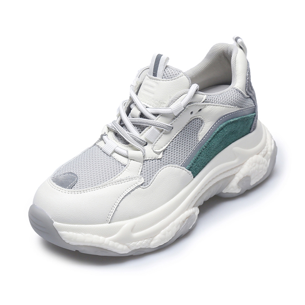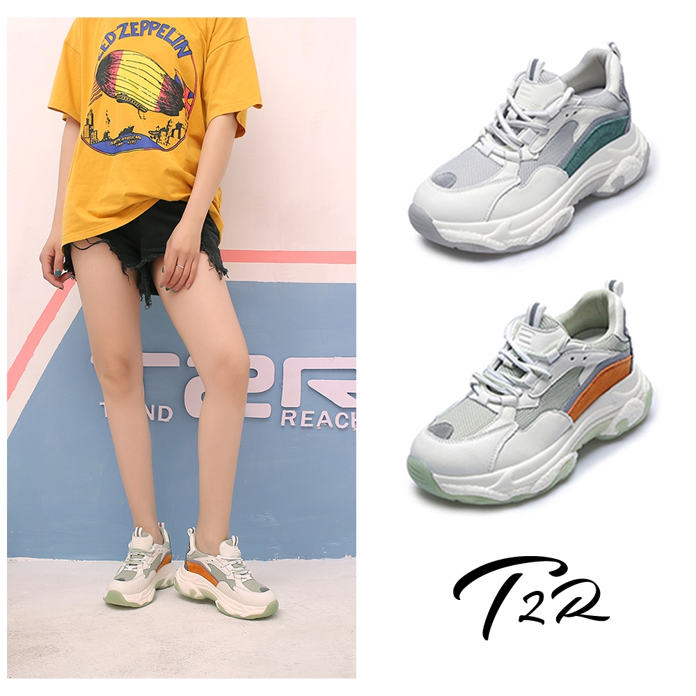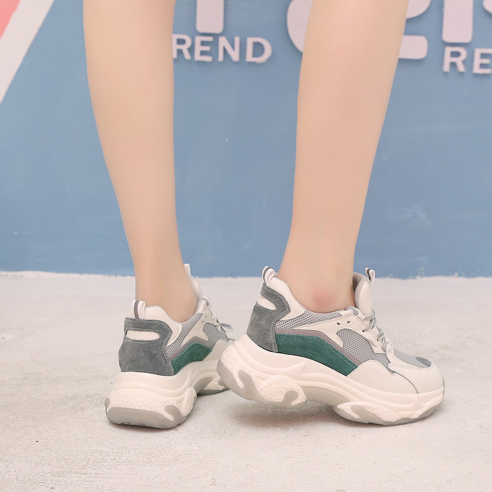 【T2R】正韓-增高鞋真皮網布拼接老爹鞋-增高7CM-灰/綠-5985-2074/2075