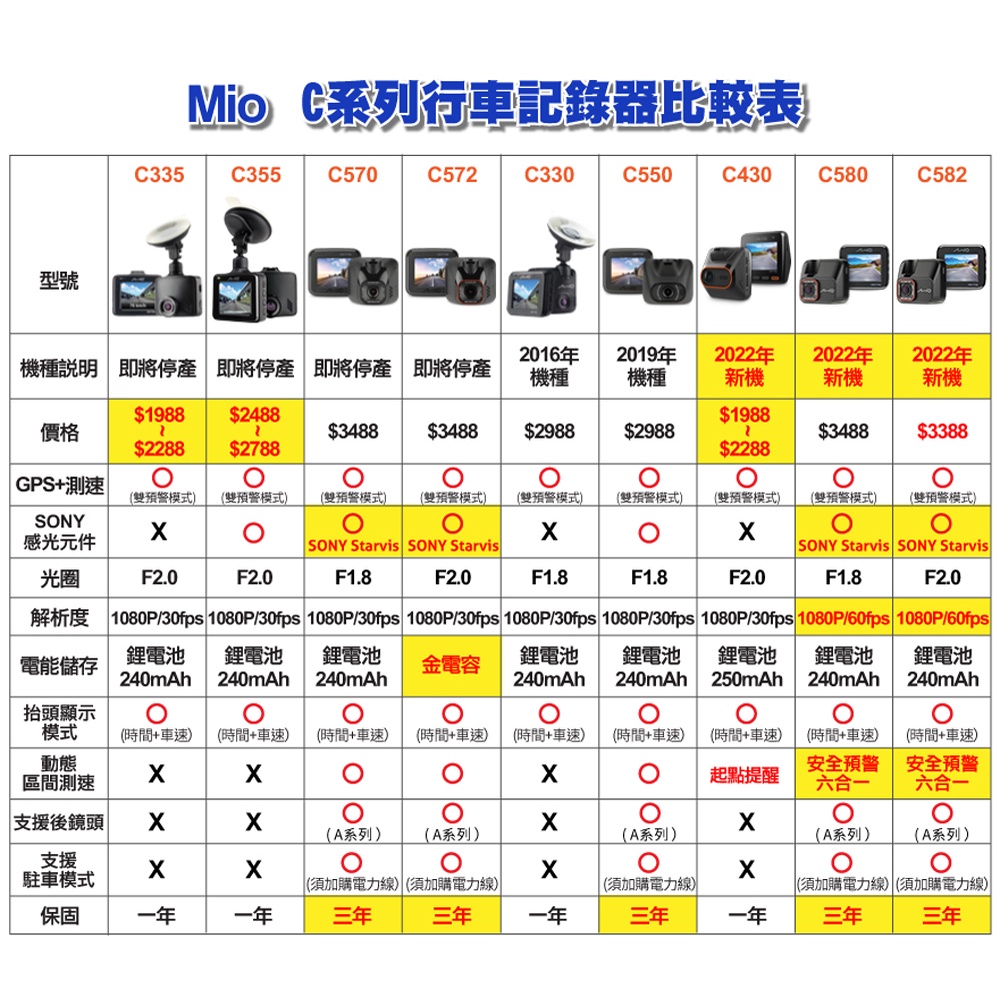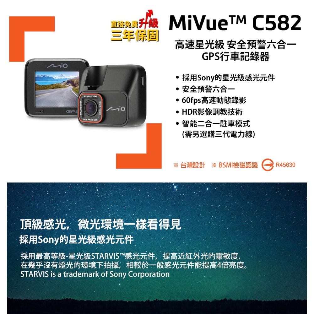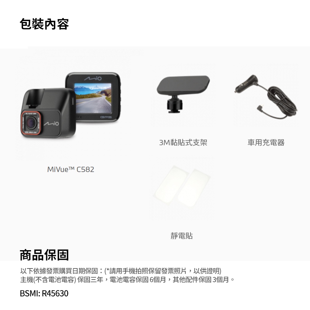 Mio C582 行車紀錄器 三年保固 GPS 測速 停車監控 1080P 60fps 安全預警六合一 黏貼支架