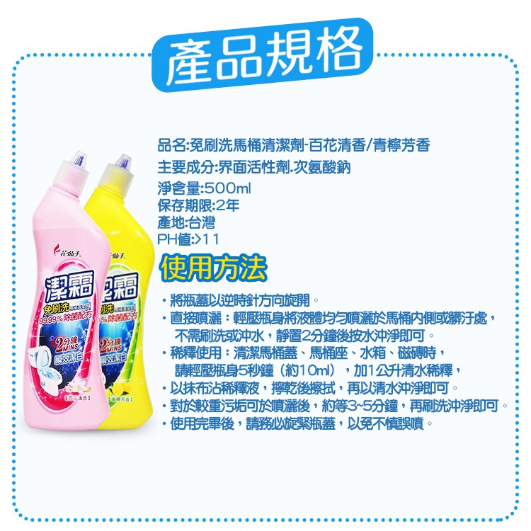 【潔霜】馬桶免刷洗清潔溜溜組(免刷洗馬桶清潔劑X6+藍藍香4入X3)