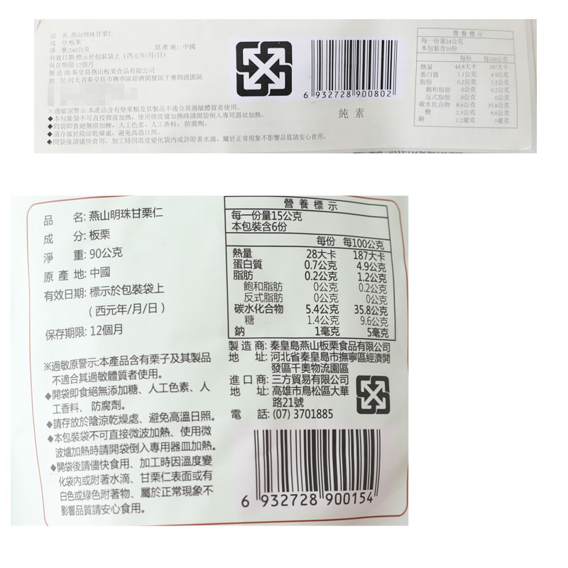 泰皇島特產 燕山明珠 甘栗仁 甘栗 板栗 栗子