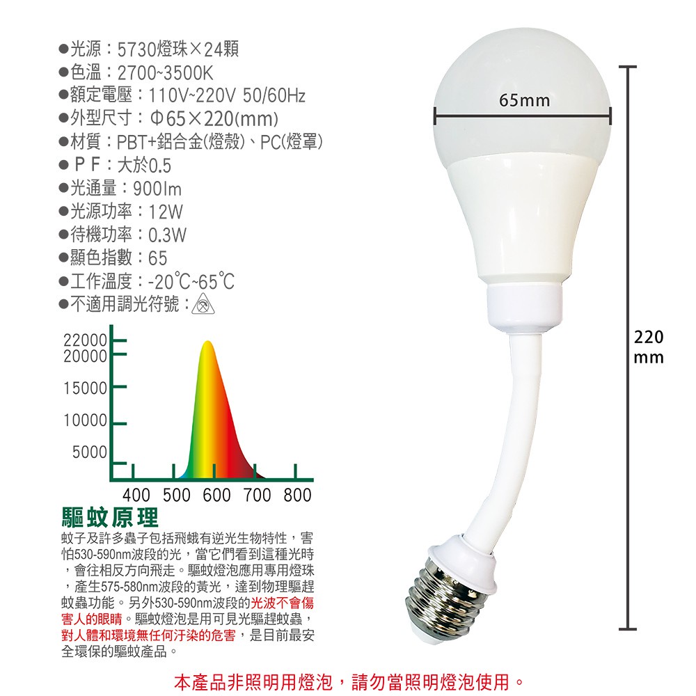 明沛 LED光控驅蚊防護燈 可彎折 螺旋式 12W LED 台灣製 自動感應 省電 驅蚊燈泡 驅蚊燈 室外燈 安全無毒