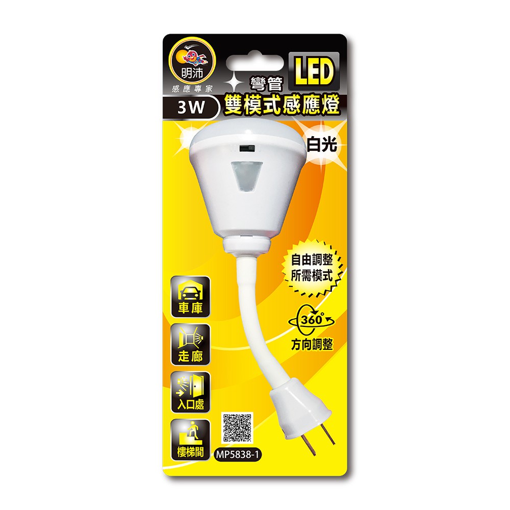 明沛 LED雙模式感應燈 可彎折 插頭式 3W LED 自動感應 感應燈 白光 雙模式 室內感應燈 小夜燈 免接觸 省電
