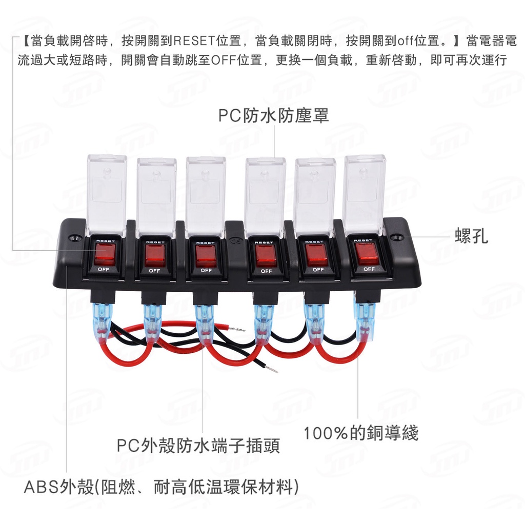六位電源開關 開關改裝面板 汽車面板 改裝面板 開關面板 電源開關 斷電開關 帶燈開關 16A 汽車 露營車 遊艇 改裝
