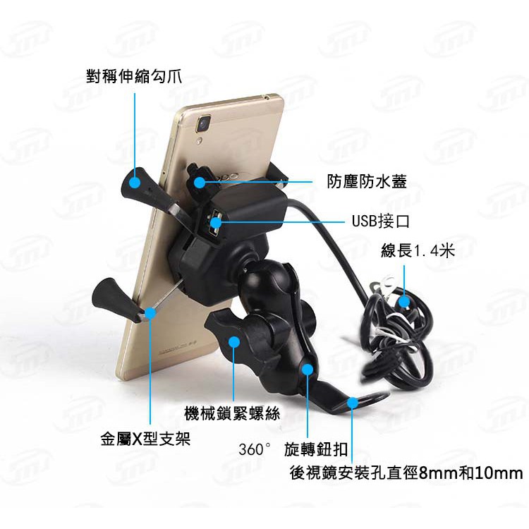 X型USB手機架 車充 適用3.5-6吋手機 附防掉網 支架 防水 重機 導航 X型 超穩固 機車手機支架