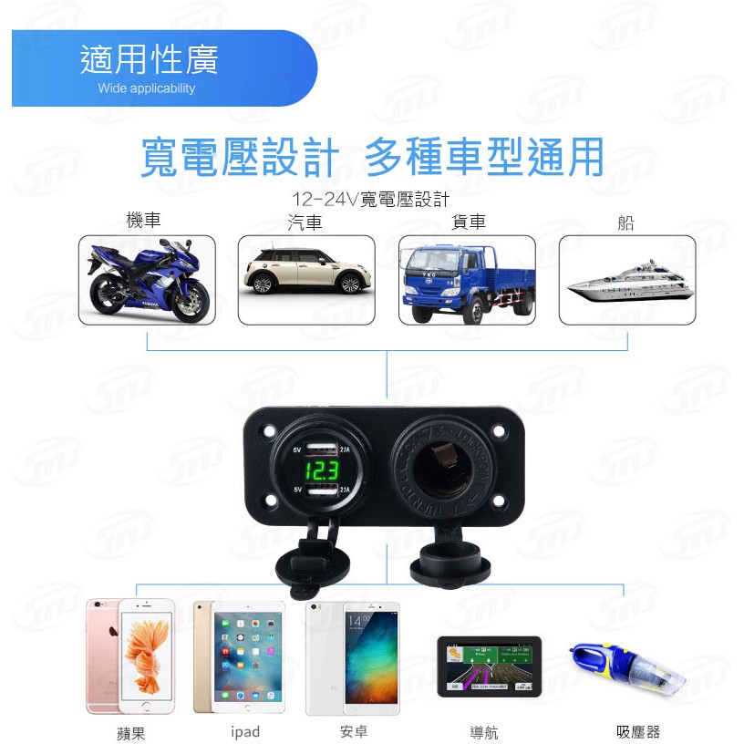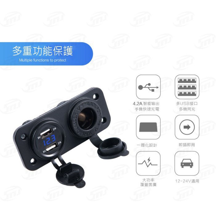 汽車雙USB車充 寬電壓設計 電壓表顯示+4.2A雙USB 點煙孔 防水 含線組