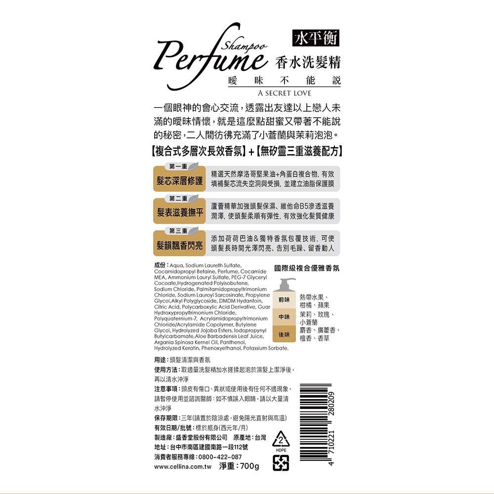 水平衡香水洗髮精 700g【佳瑪】洗髮乳