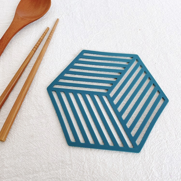 北歐風 六角 幾何 矽膠 餐桌 防燙 隔熱墊 紅/藍 兩色 簍空三角形斜線【佳瑪】