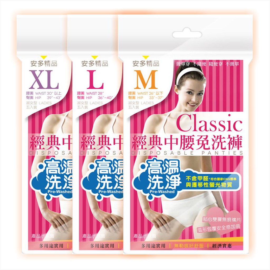 安多 精品經典中腰免洗褲 淑女型5入M /L /XL【佳瑪】拋棄式