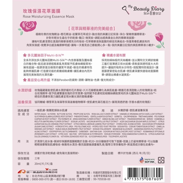 我的美麗日記 花萃面膜(金縷梅/玫瑰) 7入【佳瑪】