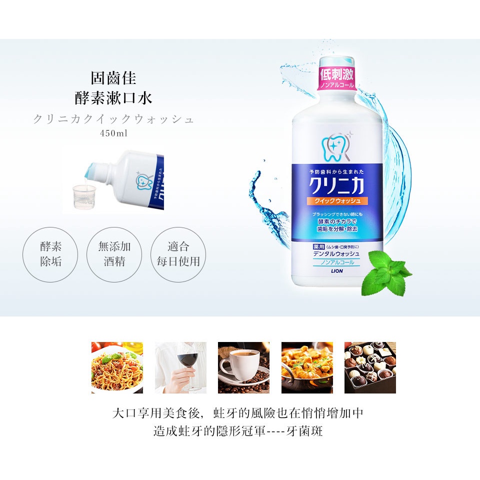 日本獅王 固齒佳酵素漱口水 450ml【佳瑪】