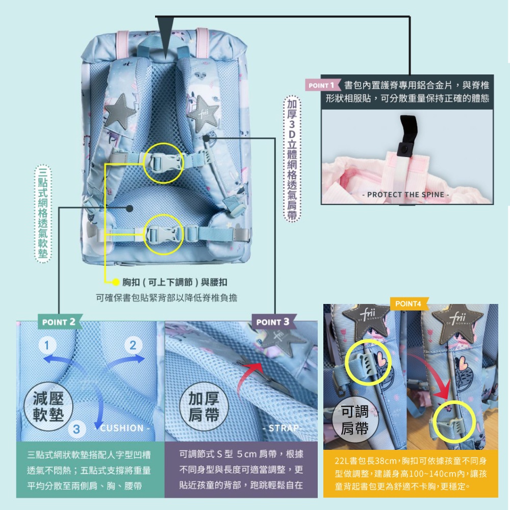 挪威Frii輕量護脊書包-動物藍(書包+筆袋組)22L