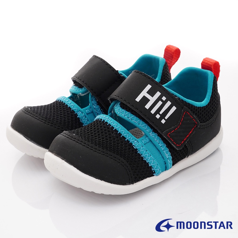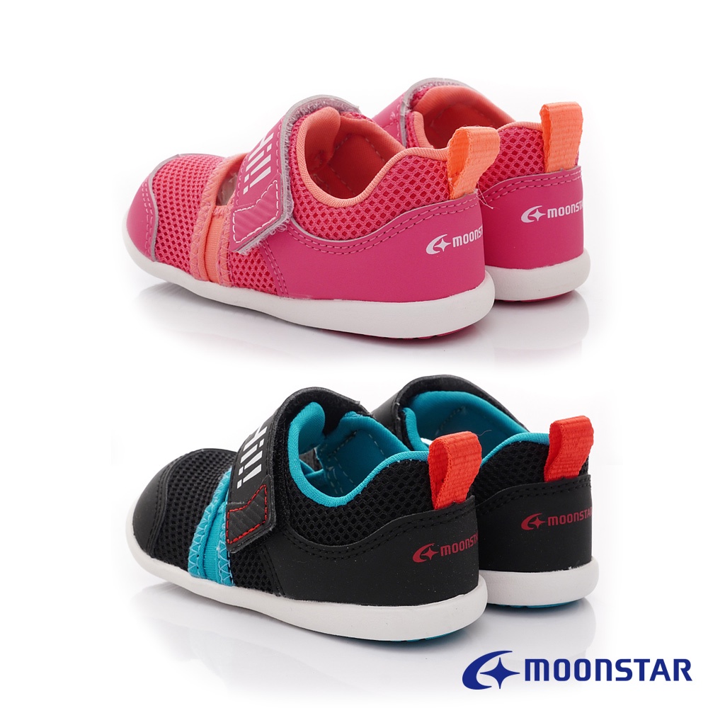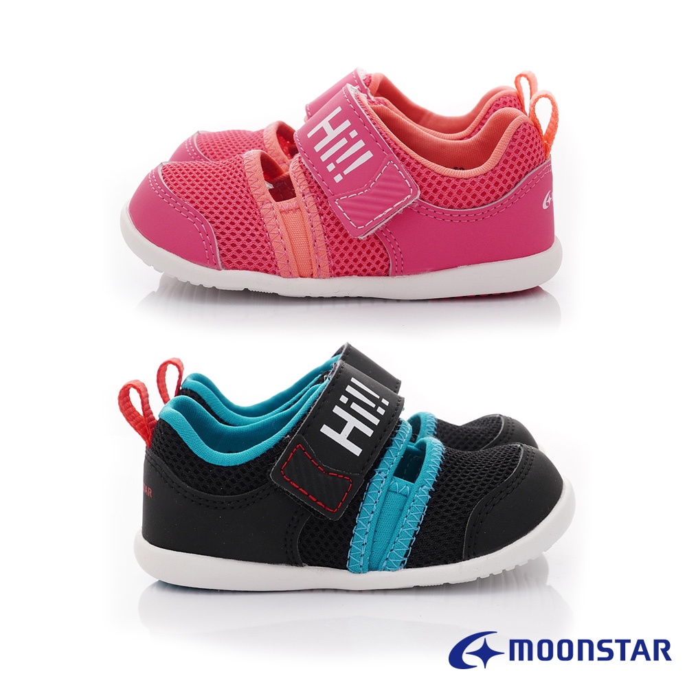 日本月星Moonstar機能童鞋HI系列透氣易穿脫涼鞋款1334粉/黑(寶寶段)12.5-14.5cm