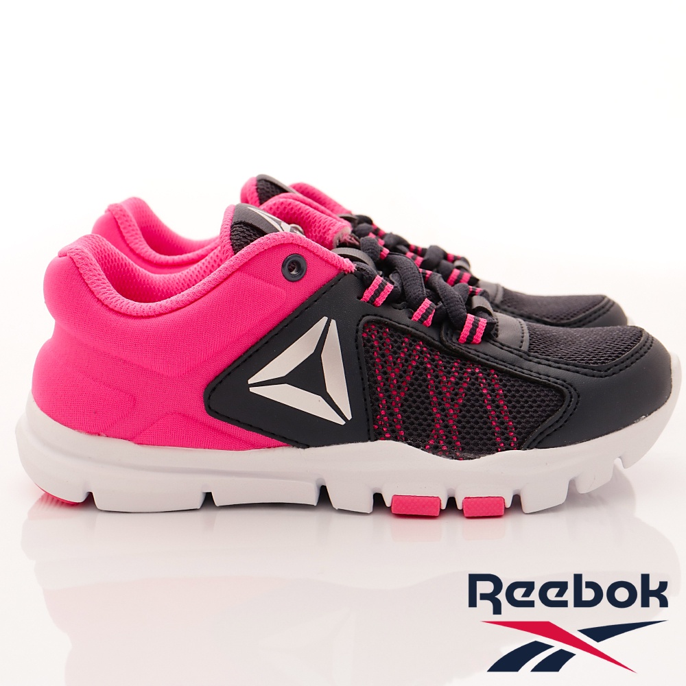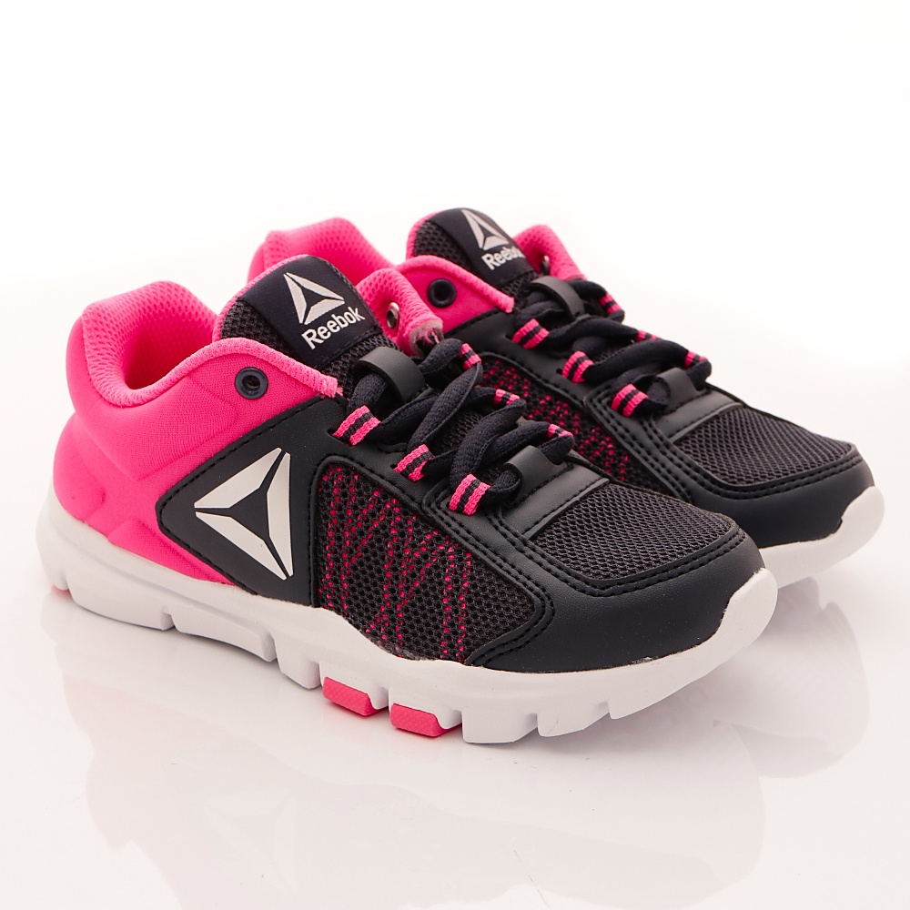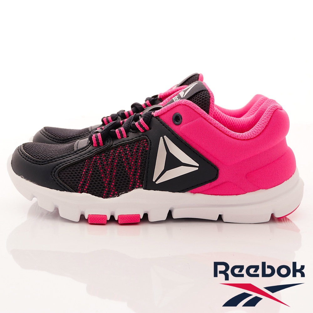 REEBOK銳跑透氣休閒慢跑鞋0766/桃黑(中小童段)20cm(零碼)