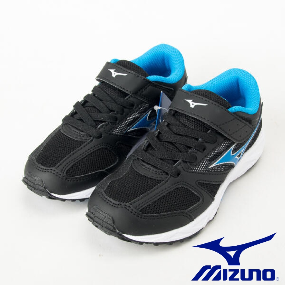 MIZUNO美津濃><流線運動慢跑童鞋款194010黑藍(中小童段)21cm(零碼)