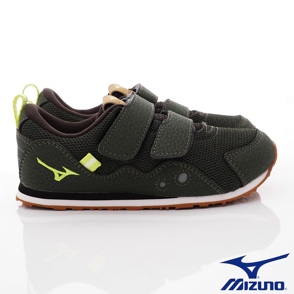 MIZUNO美津濃><大絆帶易穿脫學步童鞋款193336綠黃咖(中小童段)20cm(零碼)