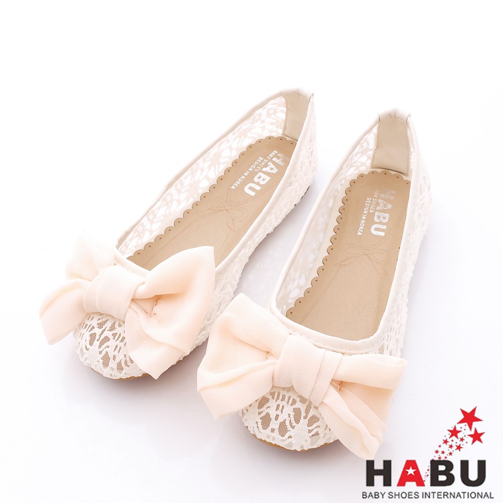 HABU哈布專櫃童鞋白色蕾絲公主娃娃鞋EF64-WH白(中小童段)28=17.5cm-零碼出清