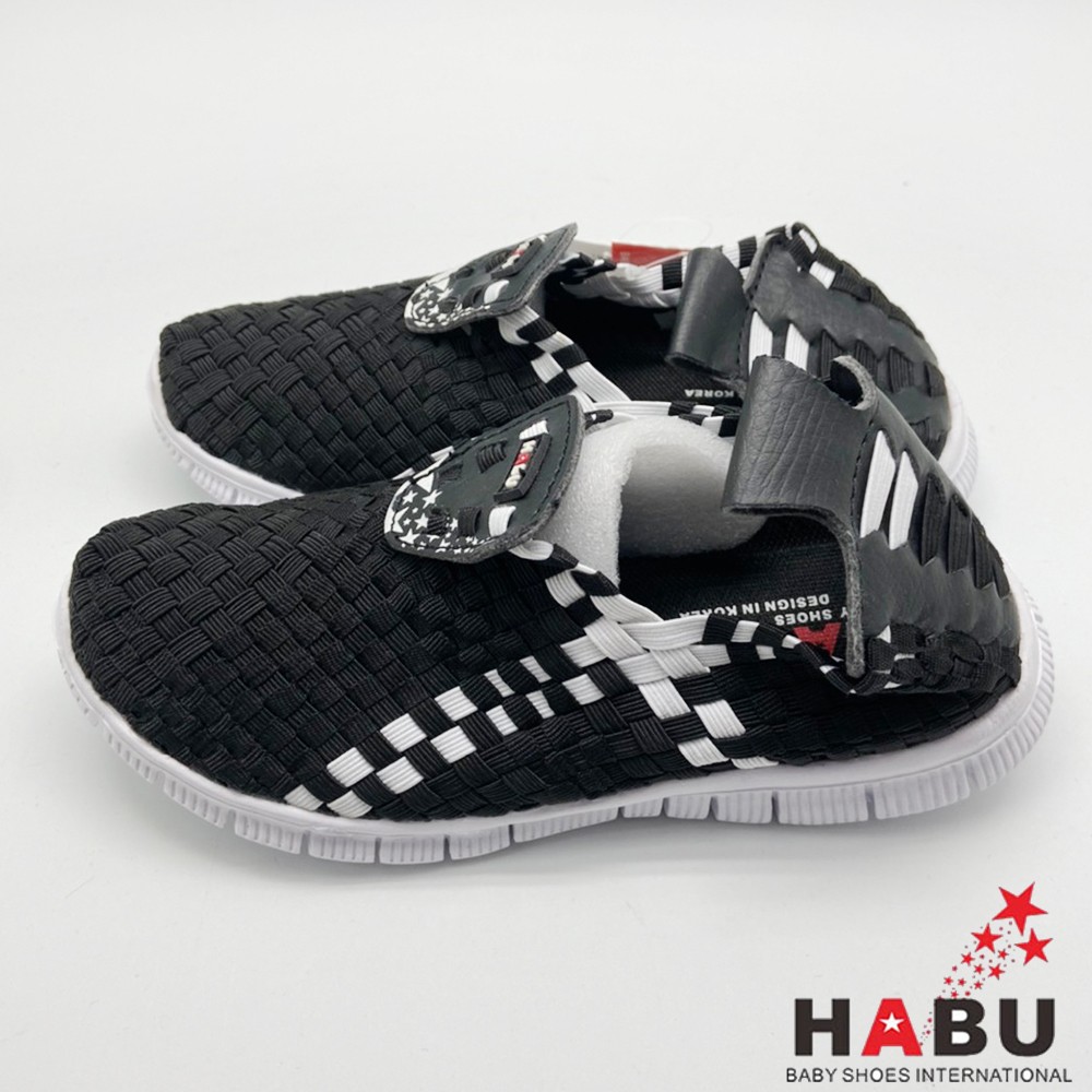 HABU哈布專櫃童鞋休閒編織運動鞋MD22B-BK黑(中小童段)28=17.5cm 31=20.6cm-零碼出清