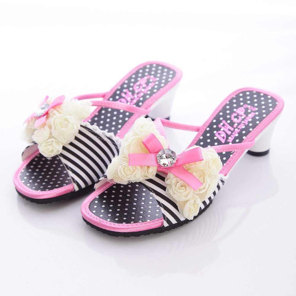 DH日本進口日本製日本原廠公主風低跟拖鞋18633桃(中小童段)16cm 17cm 18cm 19cm-福利品零碼出清