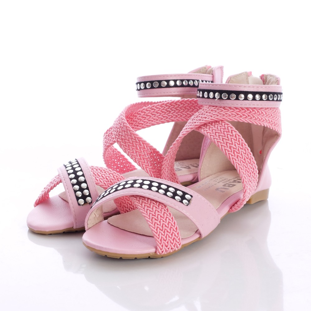 HABU哈布專櫃童鞋編織公主綁帶涼鞋HA24-PI粉紅(中大童段)31=19.8cm 32=20.5cm-零碼出清