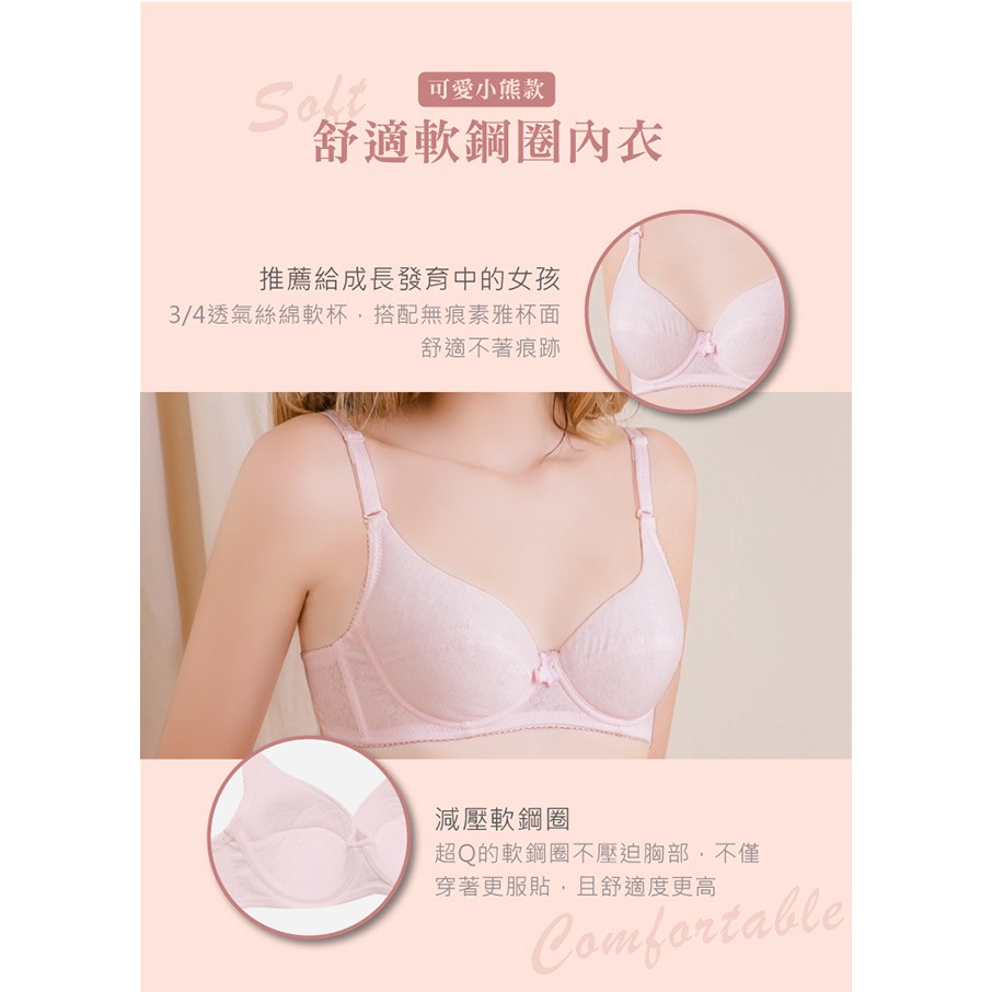 【可蘭霓Clany】台灣製超Q軟鋼圈小熊ABC罩杯學生內衣 薄杯少女成長型 粉 6202-31