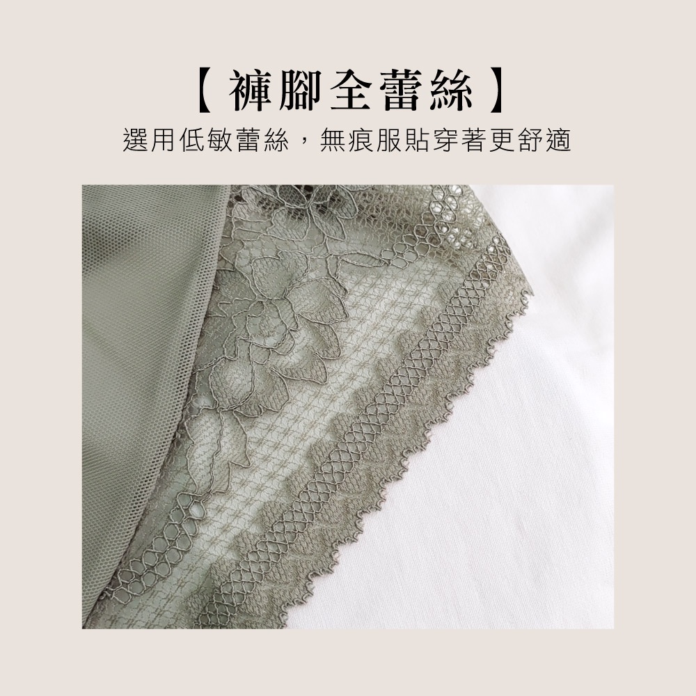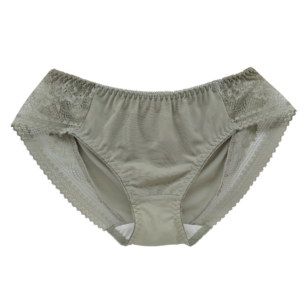 【可蘭霓Clany】初暮時光無痕蕾絲透膚網紗 M-XL內褲 橄欖綠 5995-86