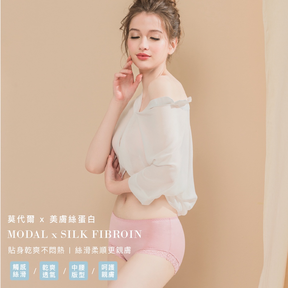 【台灣製】絲蛋白蕾絲內褲 M-XL中腰彈力|親膚低敏感 環保染劑|深粉 2171-32【可蘭霓Clany】