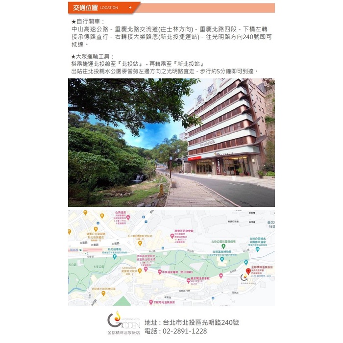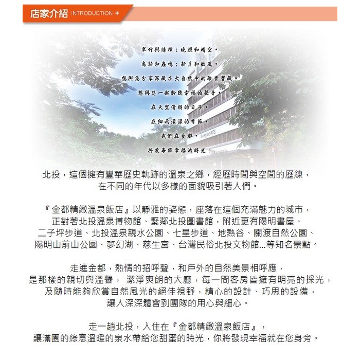北投 金都精緻溫泉飯店-親水景觀套房 住宿券/泡湯券[紙券]