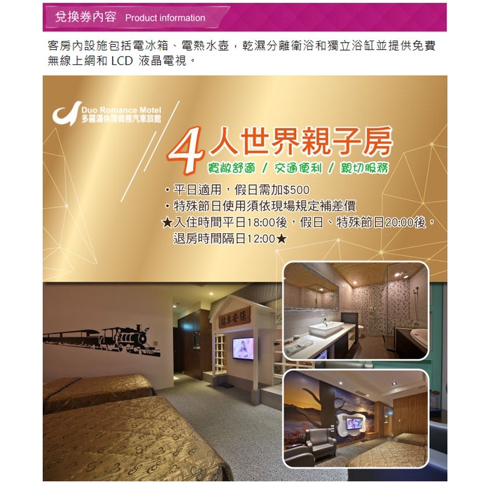 花蓮 多羅滿汽車旅館-住宿券[紙券]