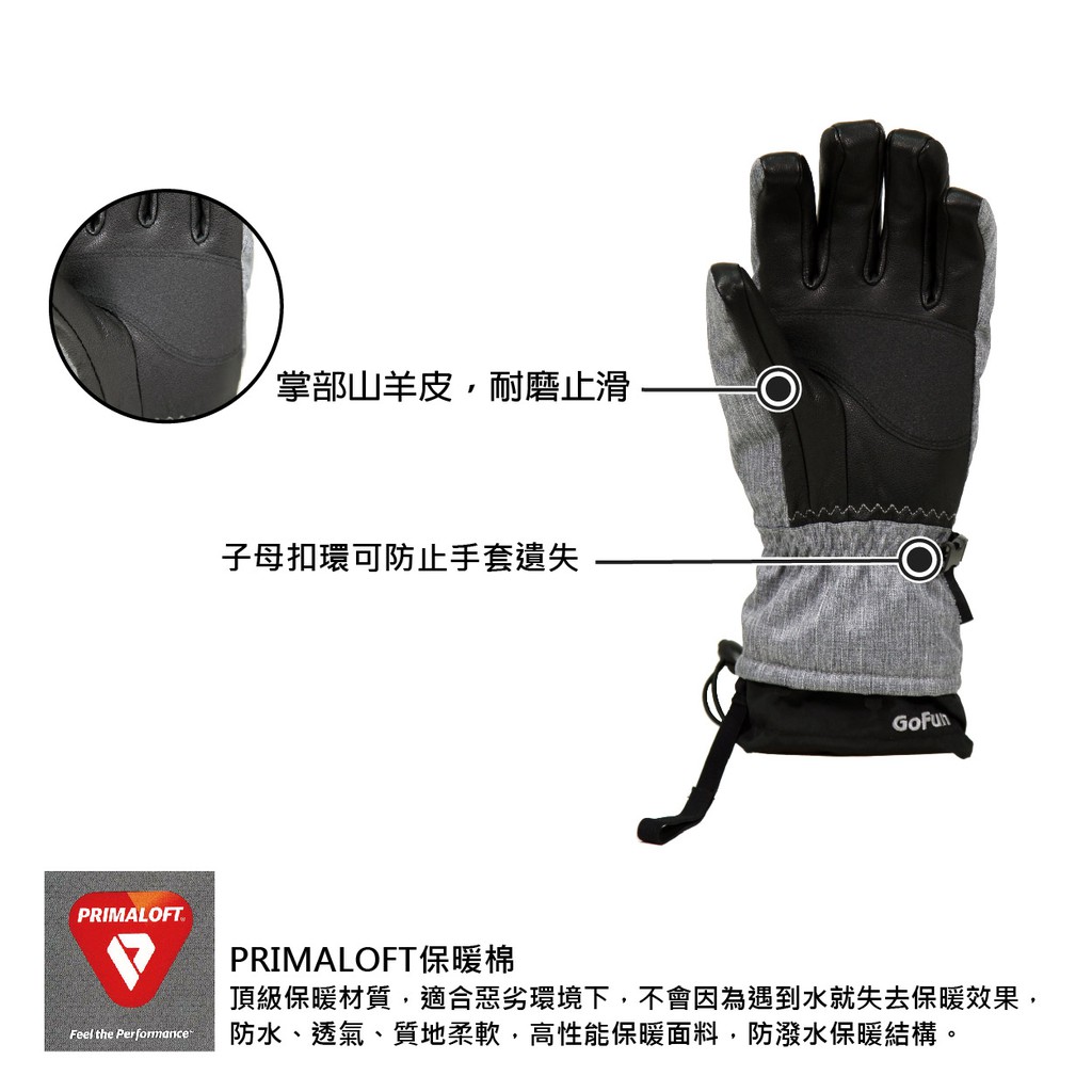 【威飛客WELL FIT】GO WELL 防水滑雪手套 - 五指/灰色男款 寒流防風防水 頂級舒適