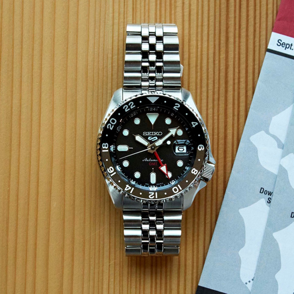 SEIKO精工5 Sports經典SKX GMT 不鏽鋼帶 黑水鬼款 經典黑 (SSK001K1/4R34-00A0D)