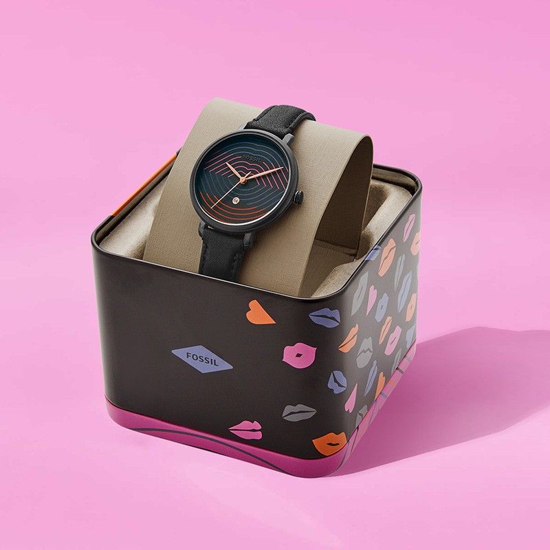 FOSSIL JACQUELINE 浪漫唇印皮革女錶-黑桃紅36MM(LE1095)【ERICA STORE】