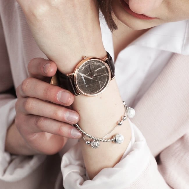 【ALLY DENOVO】Carrara Marble大石系列咖啡皮帶錶(AF5005.12)【ERICA STORE】