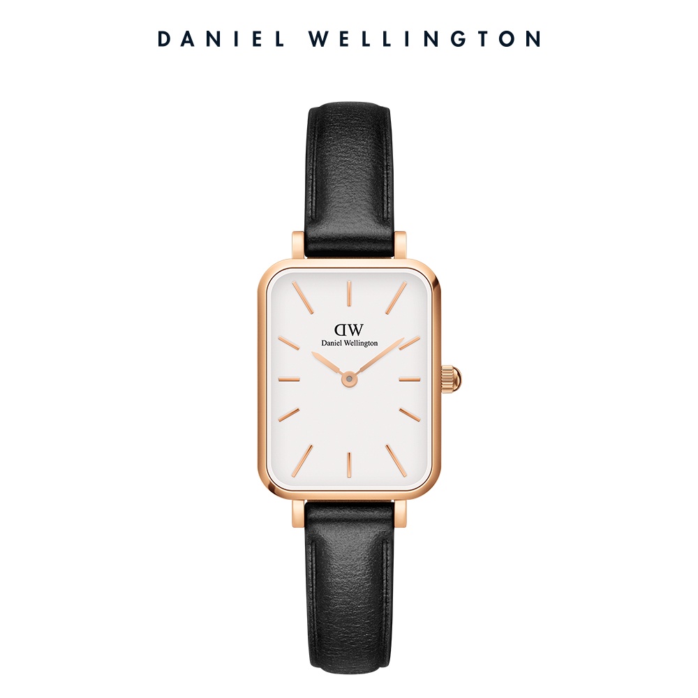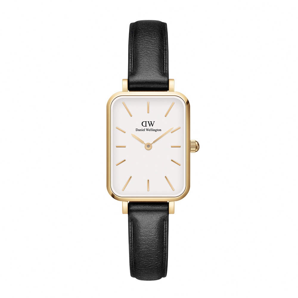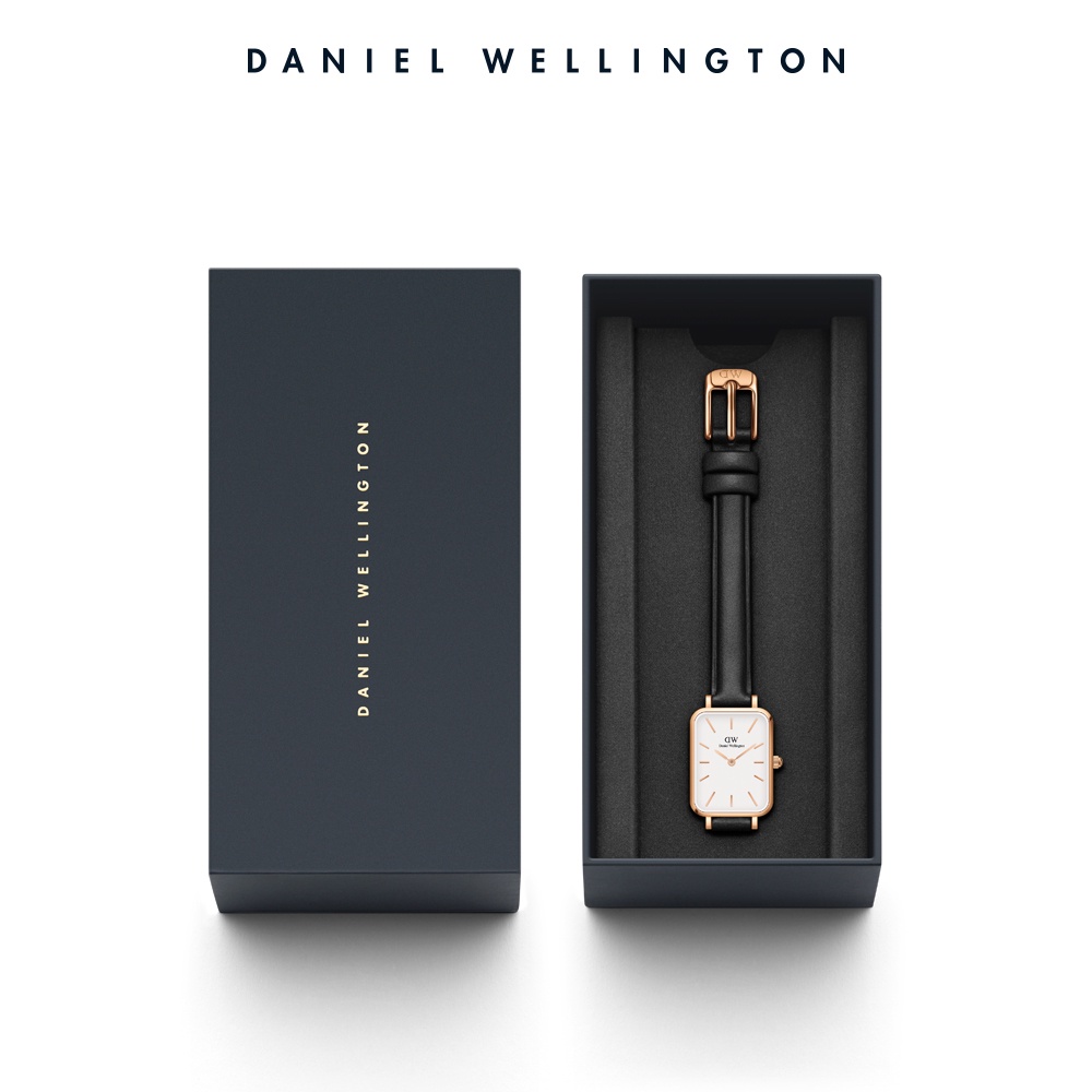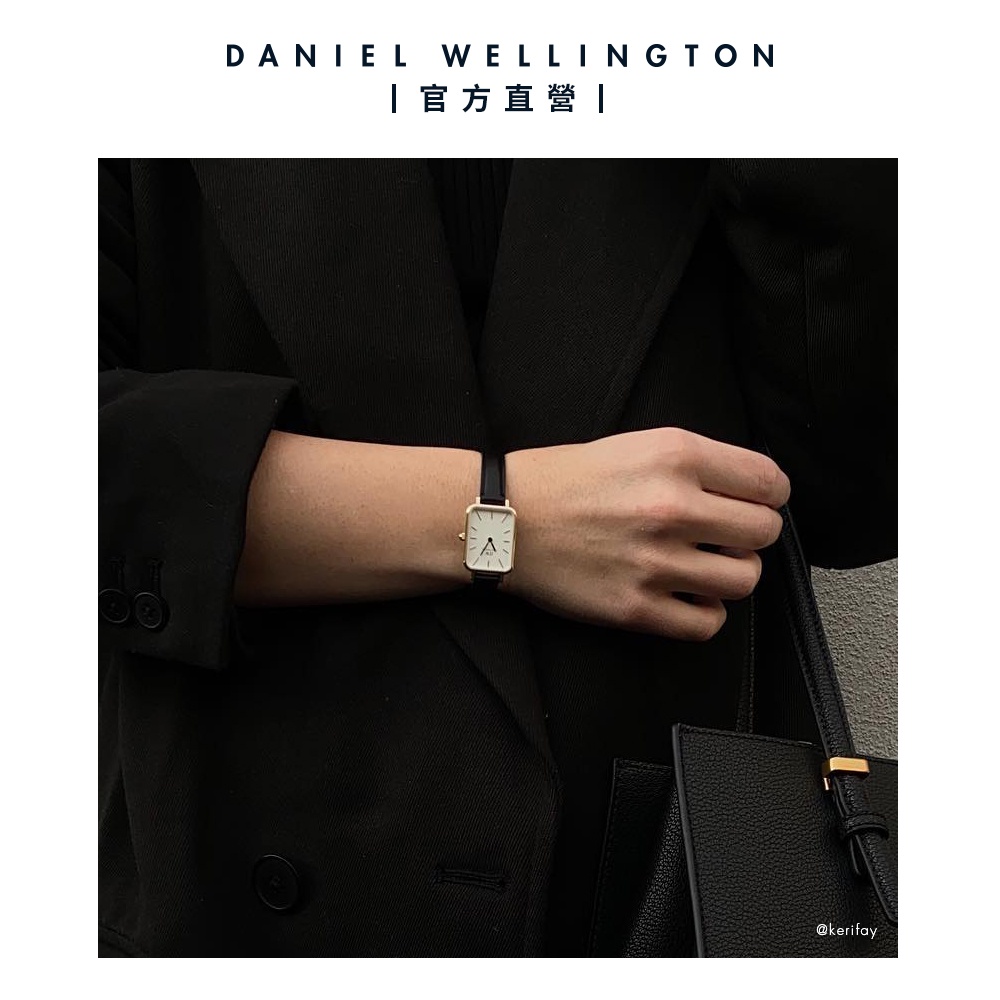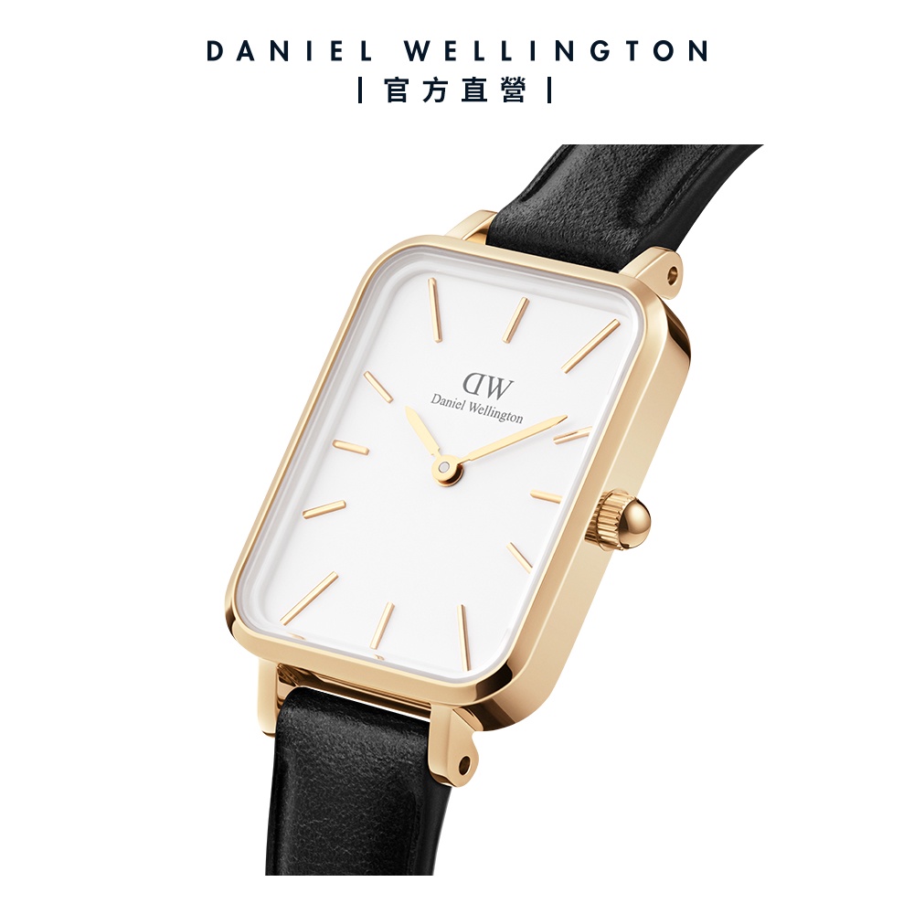 【Daniel Wellington】DW 手錶 Quadro 20X26 經典黑真皮皮革小方錶 玫瑰金/香檳金