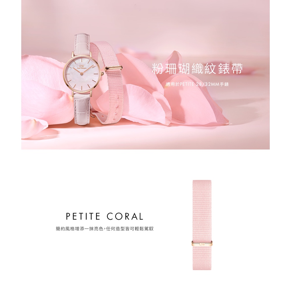 【Daniel Wellington】DW 錶帶 Petite Coral 14/12mm粉珊瑚織紋錶帶
