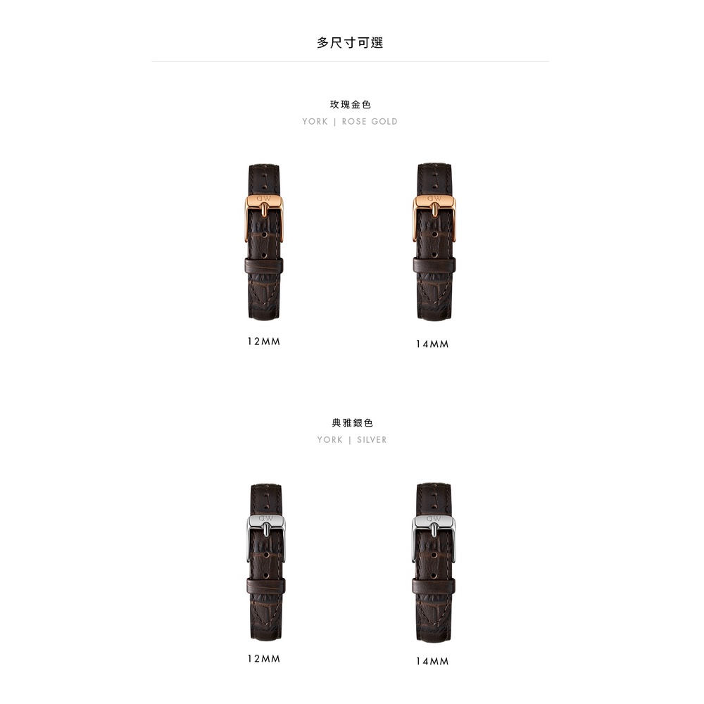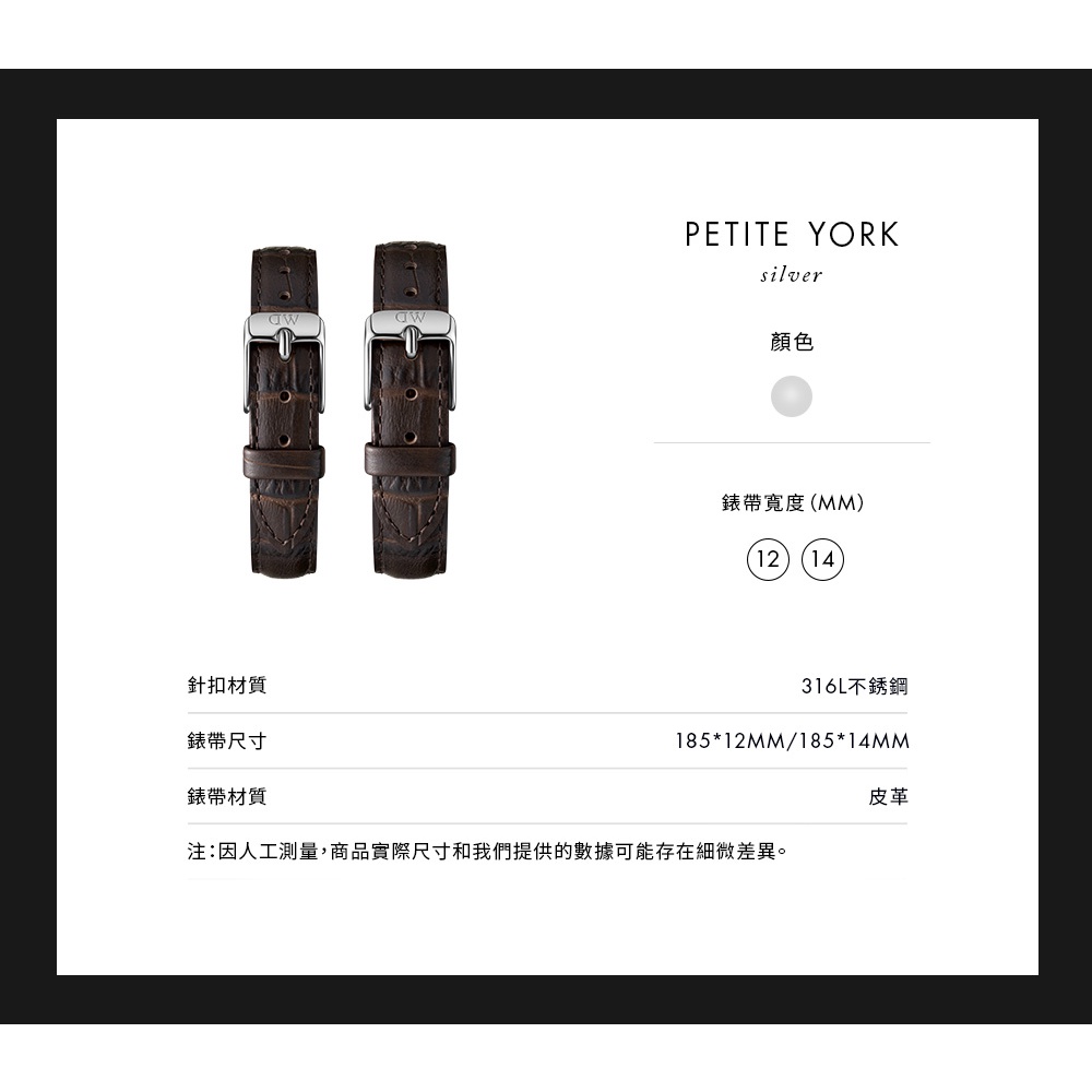 【Daniel Wellington】DW 錶帶 Petite York 14mm黑棕壓紋真皮錶帶-銀