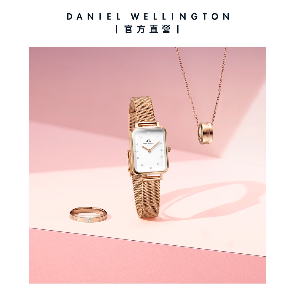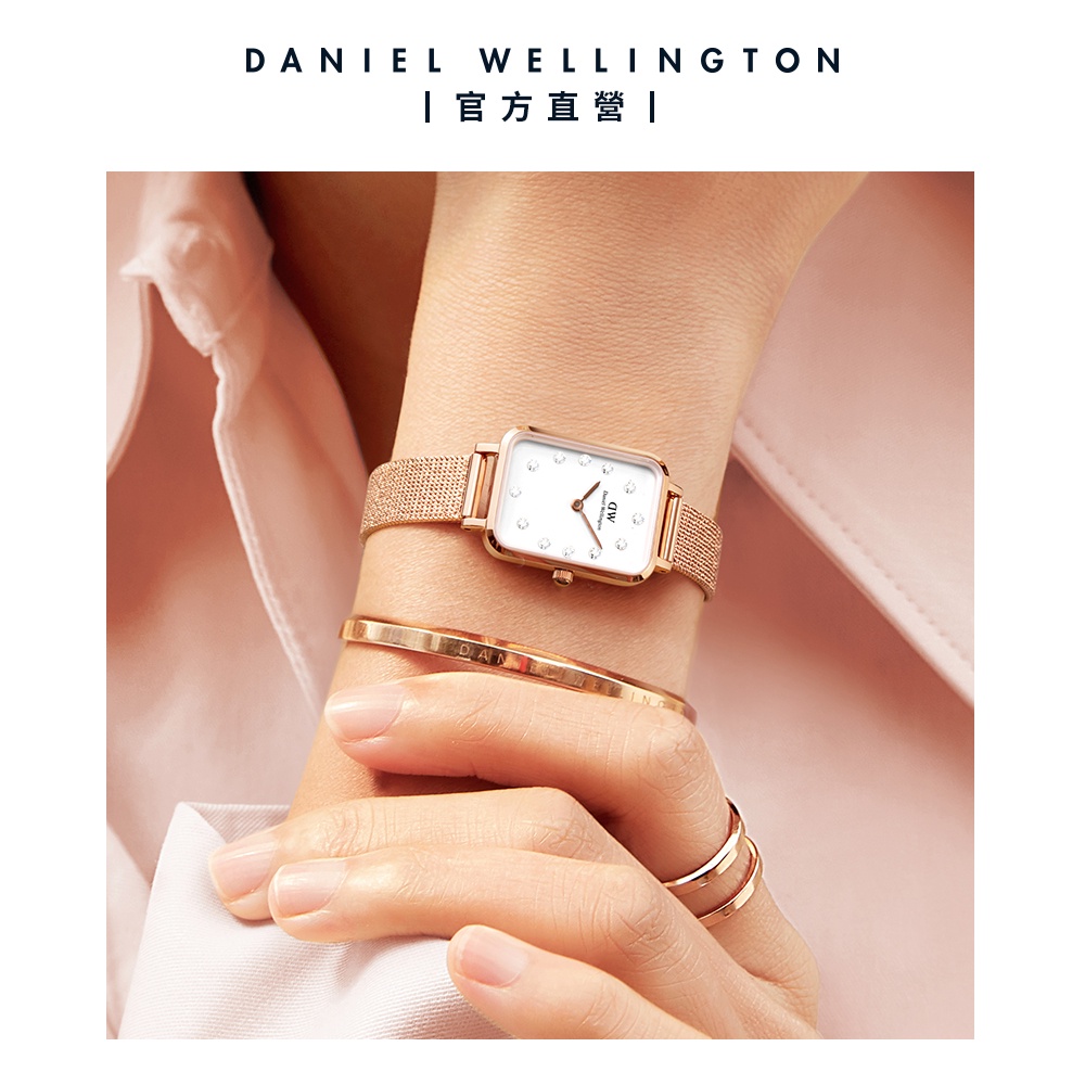 【Daniel Wellington】DW 手錶 Quadro Lumine 20X26星辰系列水晶麥穗編織方錶白錶盤