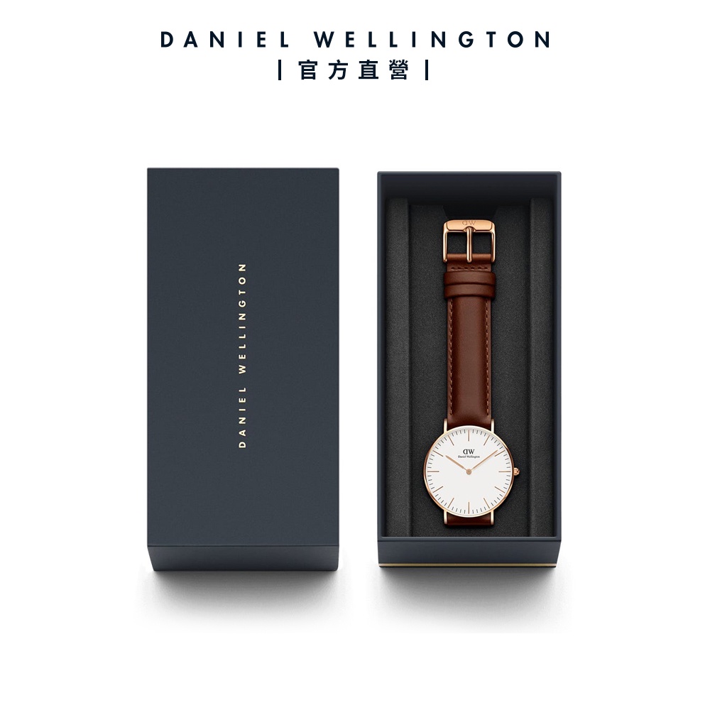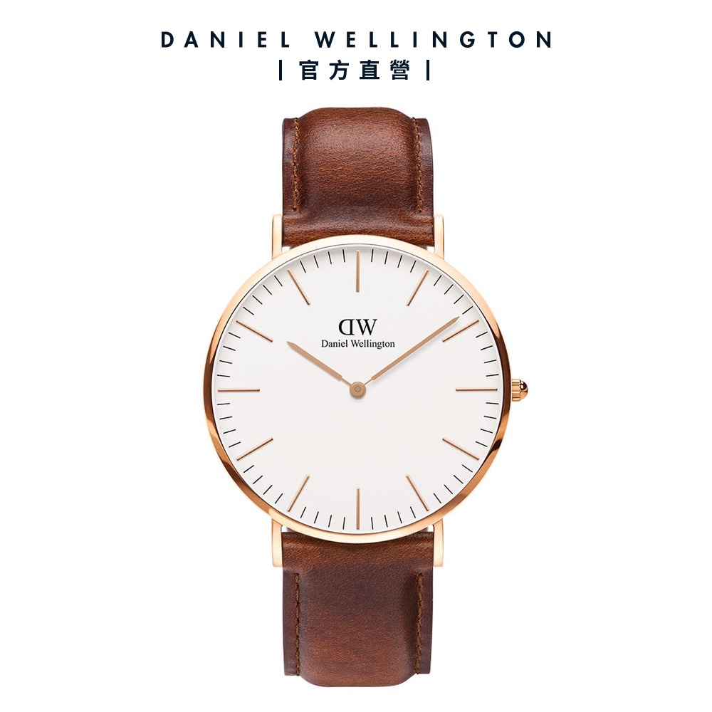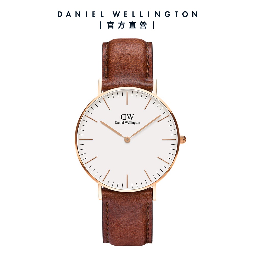 【Daniel Wellington】DW 手錶 Classic St Mawes 36/40mm棕色真皮皮革錶 白錶盤