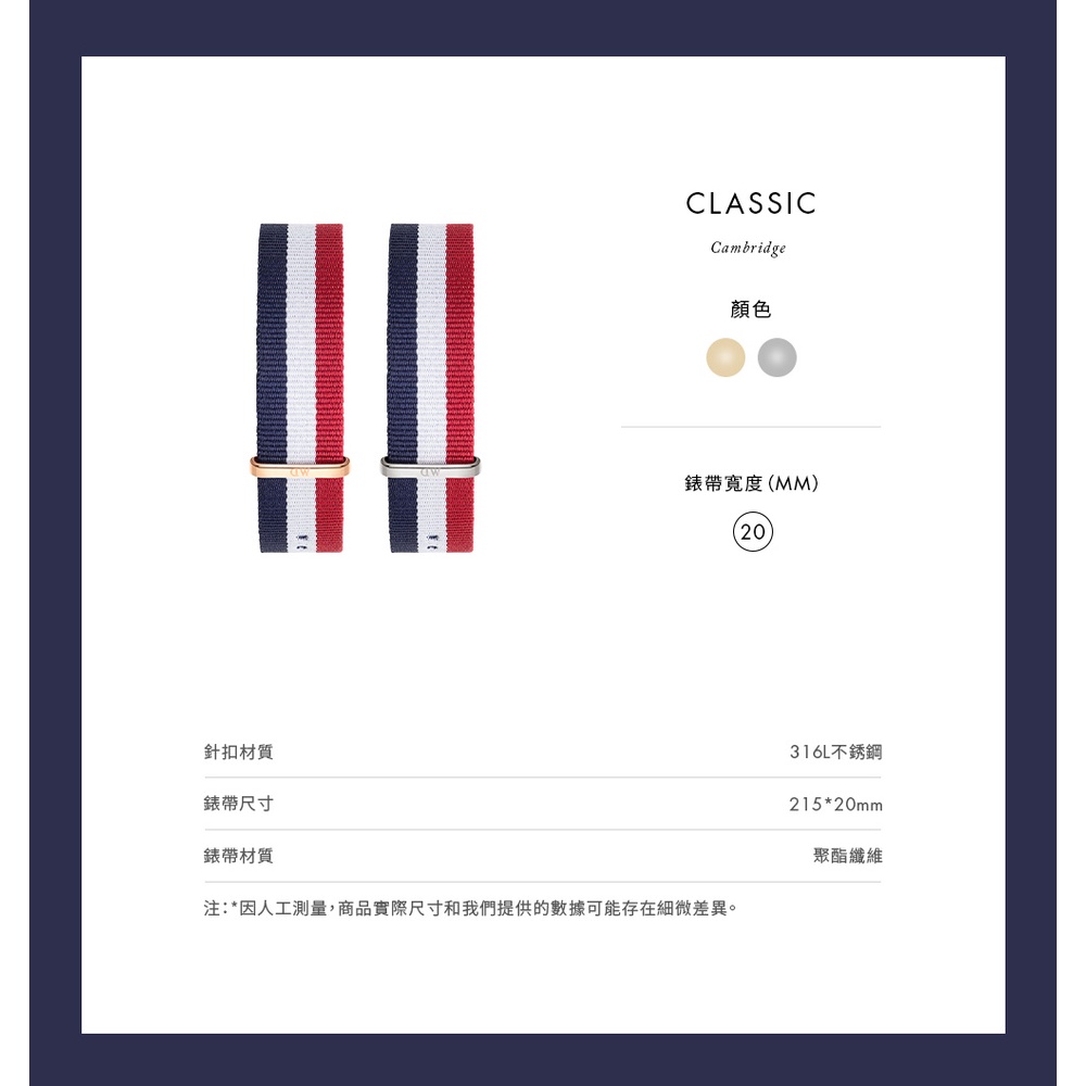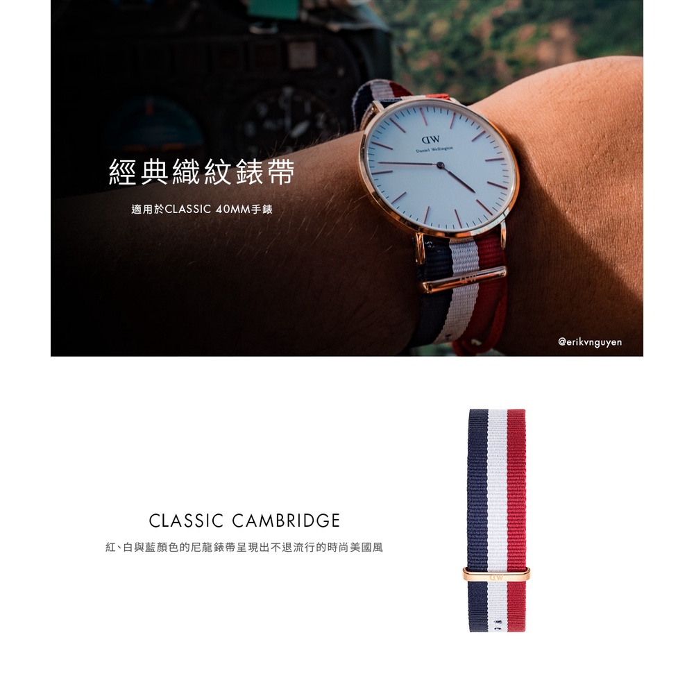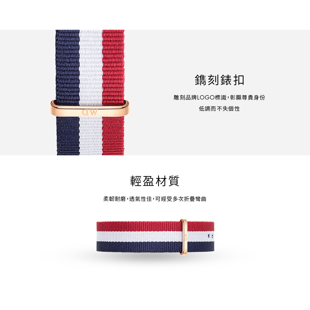 【Daniel Wellington】DW 錶帶 Classic 20mm經典藍白紅織紋錶帶 玫瑰金