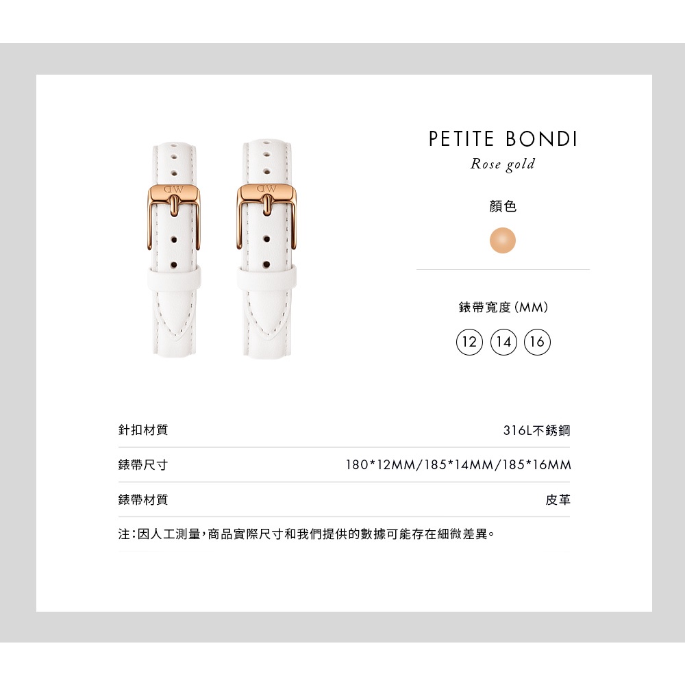 【Daniel Wellington】DW 錶帶 Petite Bondi 14mm 純真白真皮錶帶 玫瑰金 DW錶帶